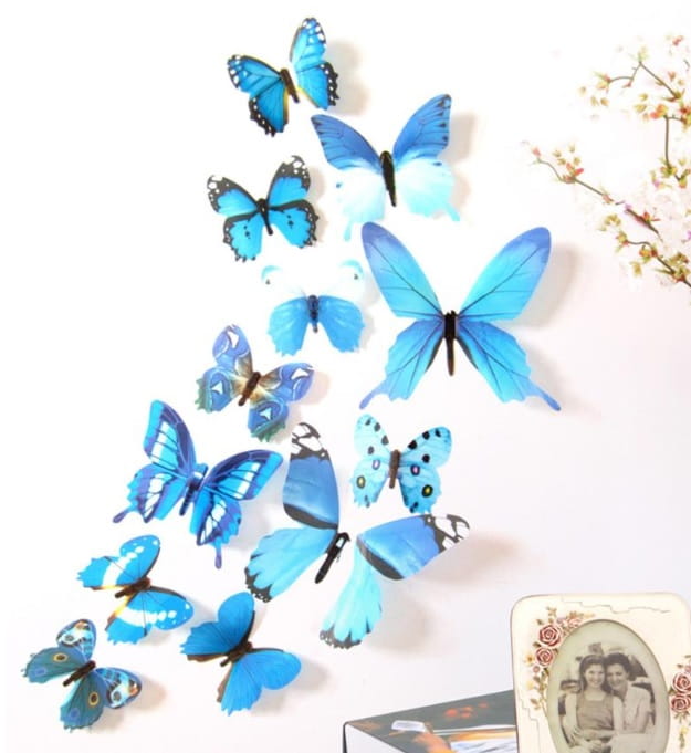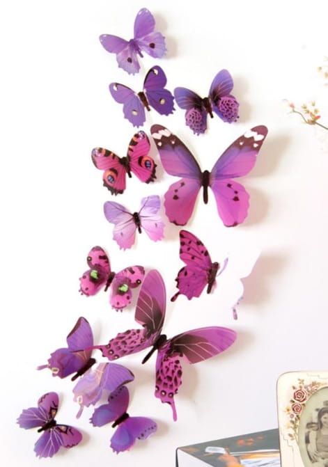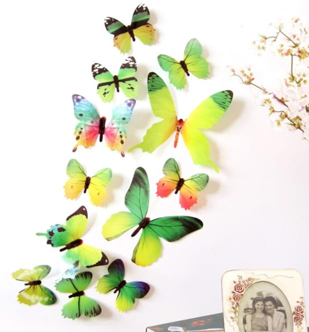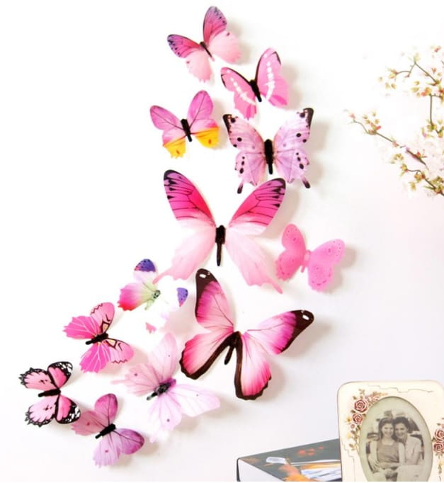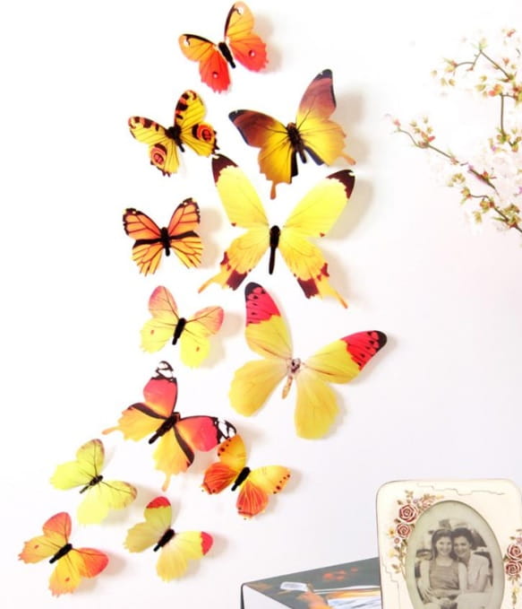 12 sztuk naklejek motylków 3D idealnie nadadzą się do ozdobienia ścian, drzwi i innych elementów.