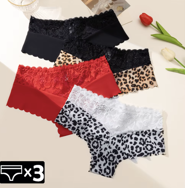 Majtki damskie koronkowe - zestaw 3 sztuk, wysoki stan, elastyczne