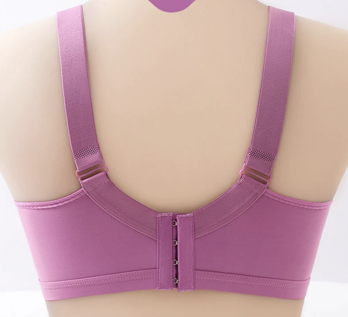 Dzięki szerokiemu zapięciu wokół klatki piersiowej biustonosz doskonale podtrzymuje biust i zapewnia stabilność podczas noszenia. Szerokie ramiączka nie wyciskają ani nie przeszkadzają, co sprawia, że można nosić go przez długi czas bez uczucia dyskomfortu.