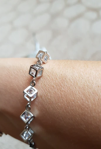 Przepiękna bransoletka damska z ozdobnymi kwadracikami.