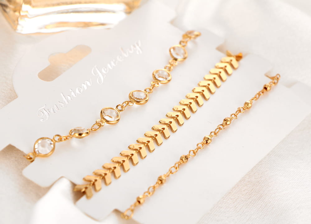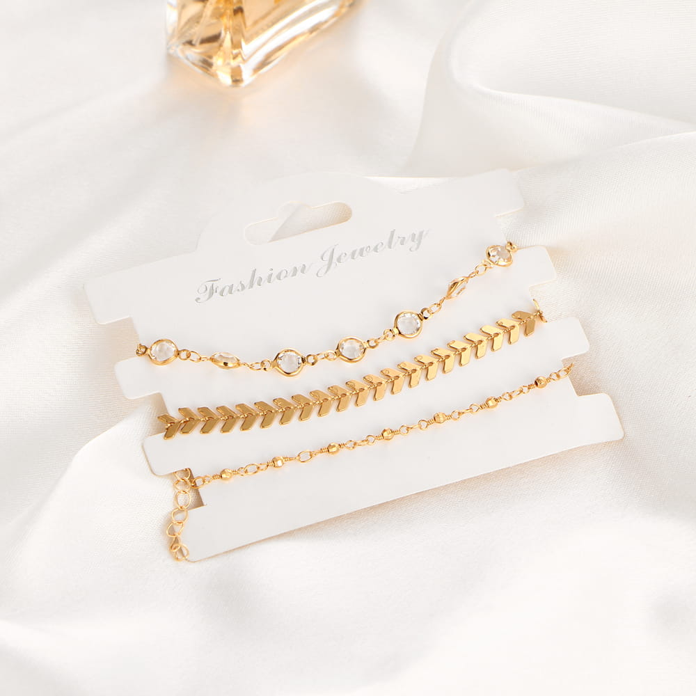 Zestaw 3 bransoletek na nogę złotych 020