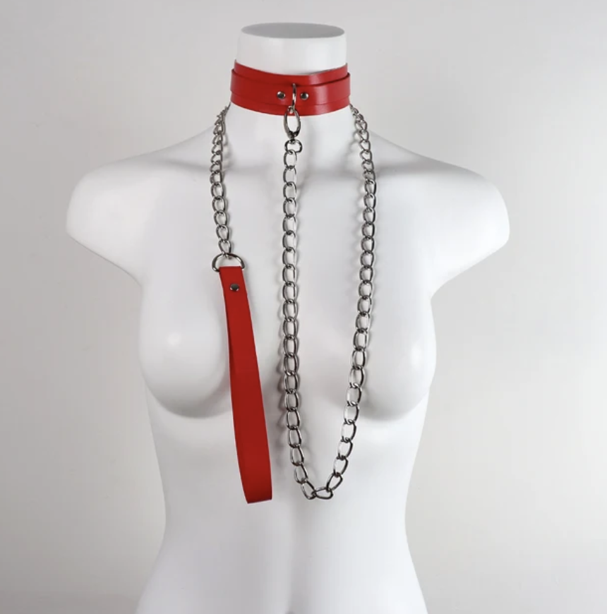 Choker z dopinanym łańcuszkiem do trzymania BDSM to niezwykle zmysłowy i prowokacyjny dodatek, który idealnie komponuje się z oszałamiającym strojem wieczorowym lub erotyczną bielizną.
