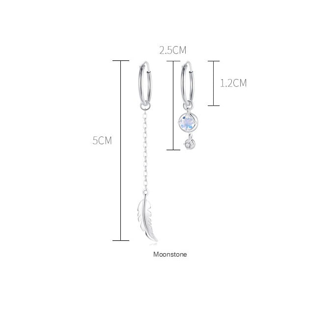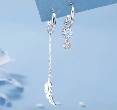 Kolczyki damskie dwie długości , z pięknym piórkiem i cyrkonią.