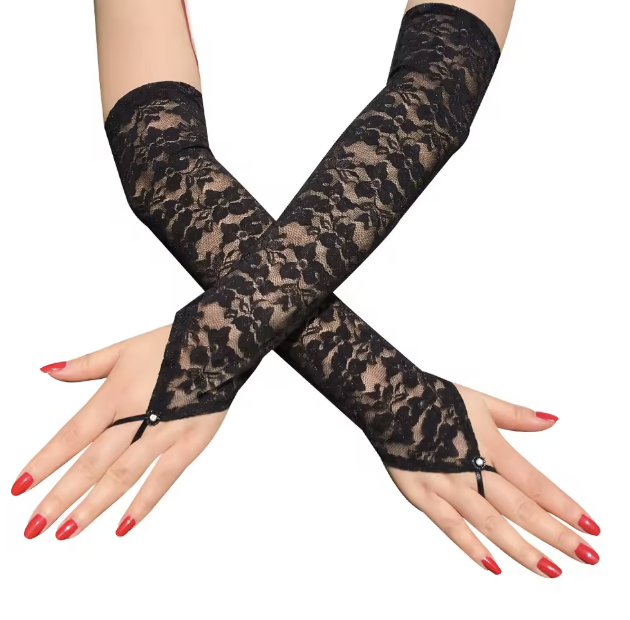 Koronkowe rękawki damskie bez palców to elegancki i zmysłowy dodatek do bielizny erotycznej, stylizacji wieczorowych, sesji zdjęciowych oraz outfitów klubowych. Wykonane z delikatnej, elastycznej koronki, pięknie dopasowują się do ramienia i dłoni, subtelnie podkreślając kobiecą sylwetkę.