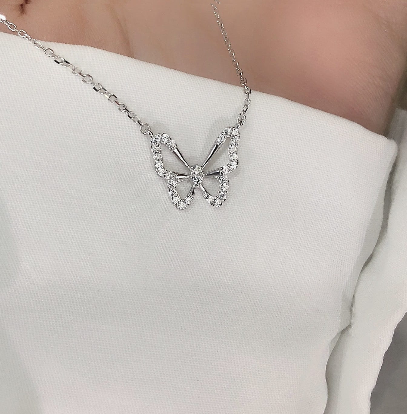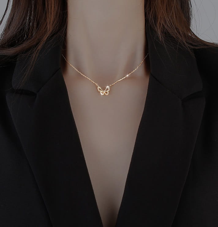 Cyrkonie umieszczone w skrzydłach motyla pięknie się mienią.