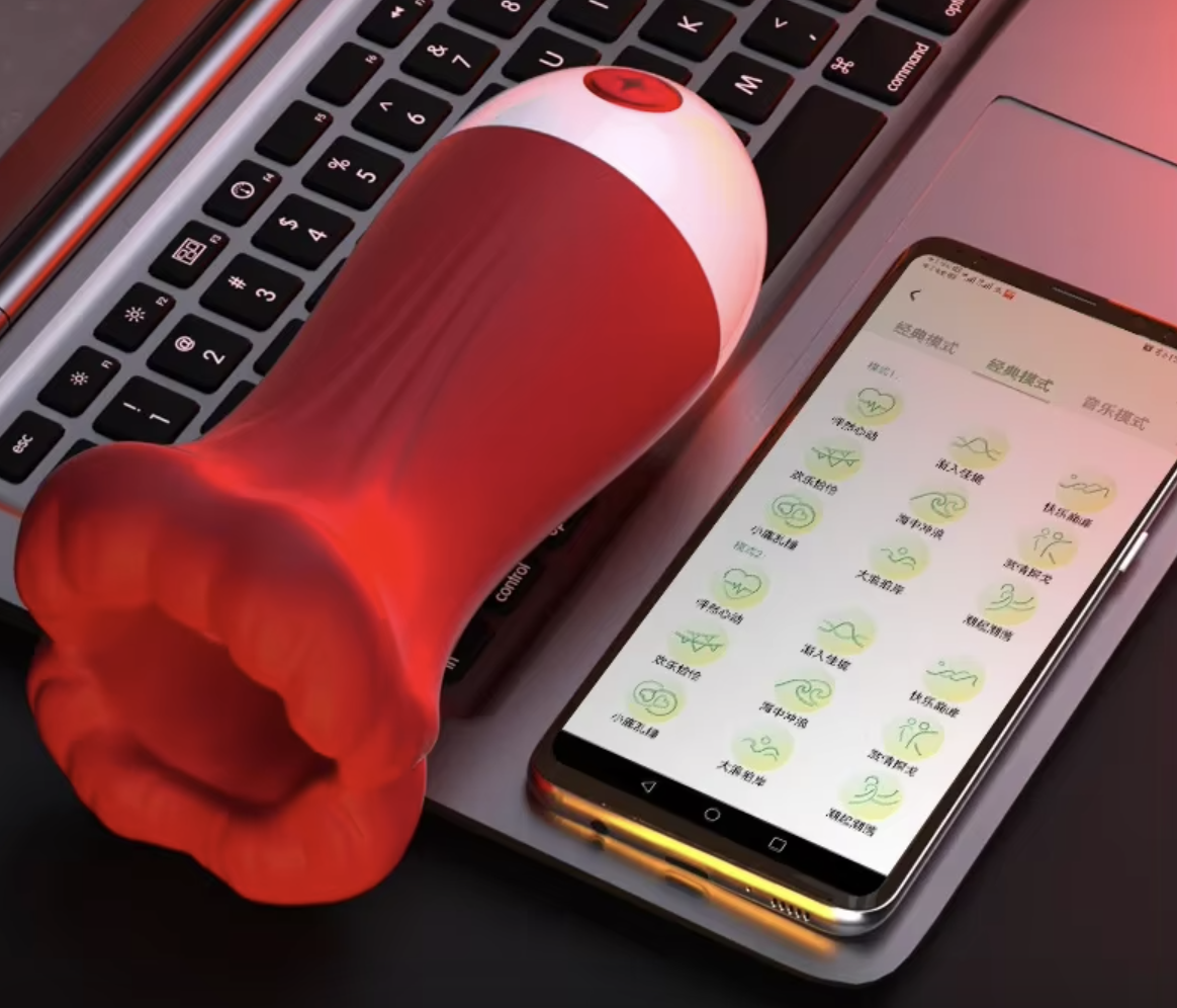 Męski Masturbator w Kształcie Ust z Kontrolą w Aplikacji