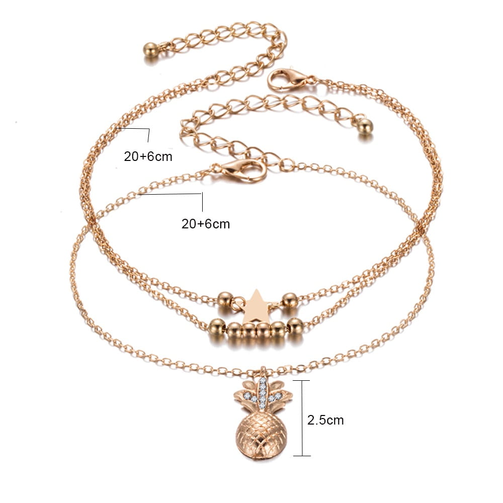 Potrójna bransoletka na nogę gwiazda , ananas C04