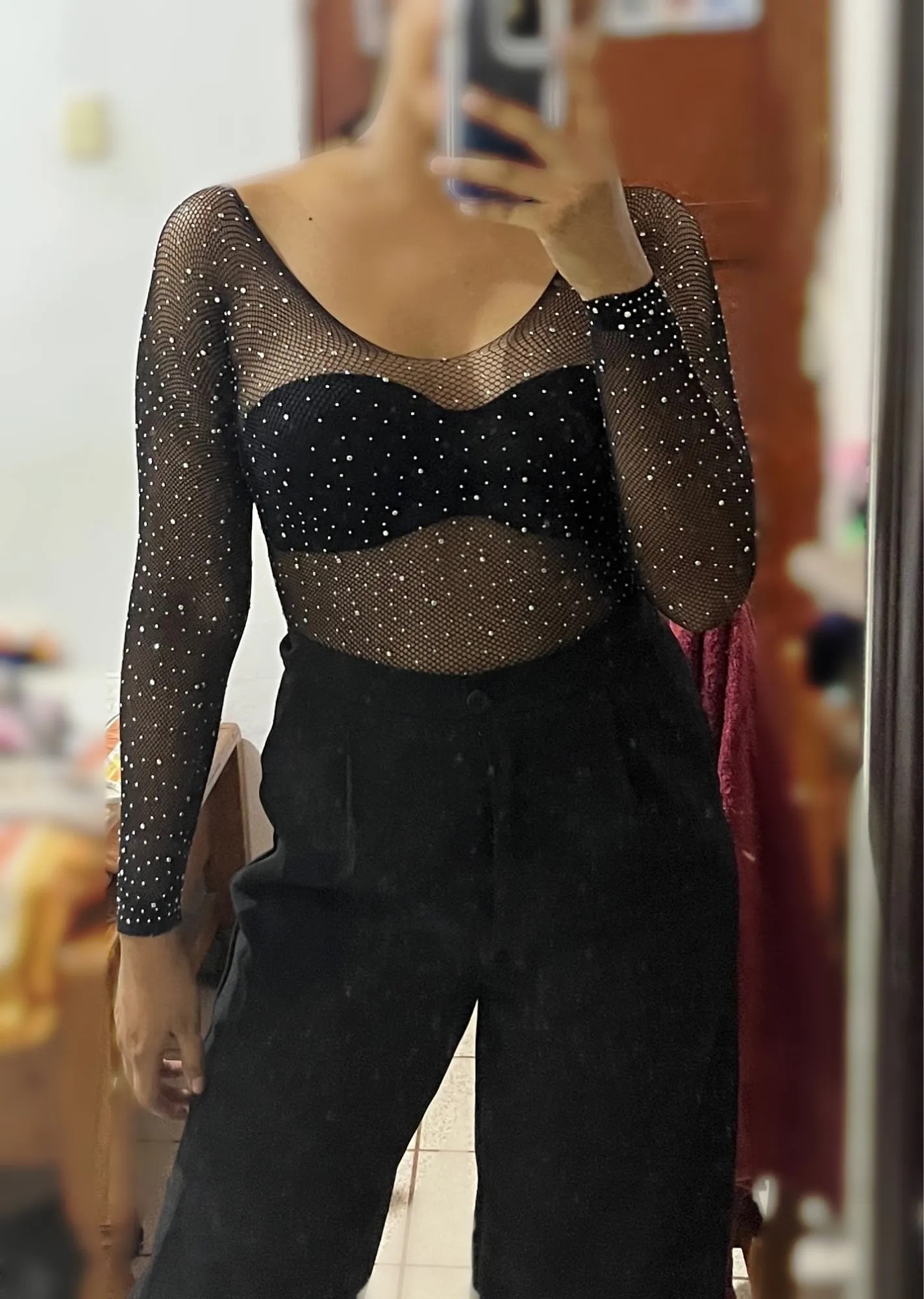 Body erotyczne z rękawkiem sexy cekiny E86