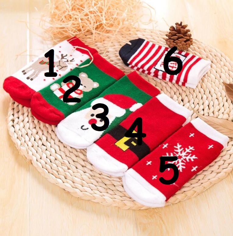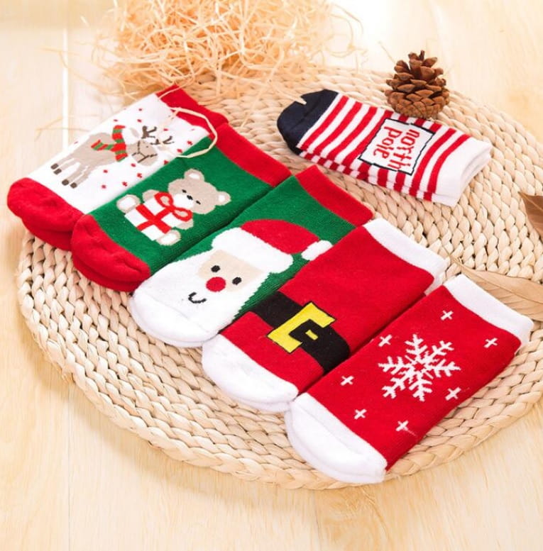 Świąteczne, dziecięce skarpetki w różne wzory.