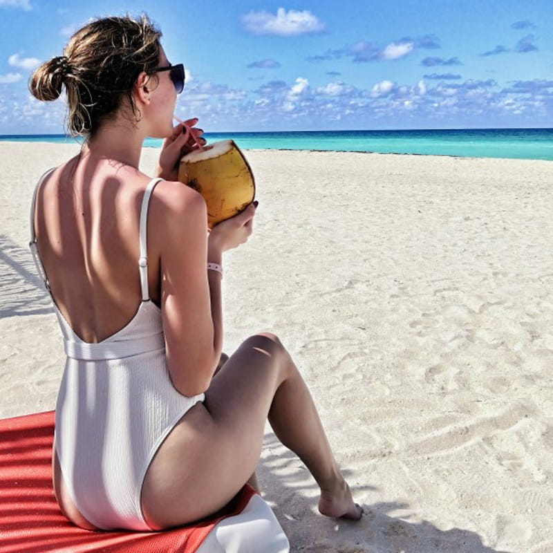 Przepiękny strój kąpielowy jednoczęściowy z nakładanym paskiem w talii.