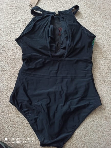Jednoczęściowy strój kąpielowy z usztywnianymi miseczkami.