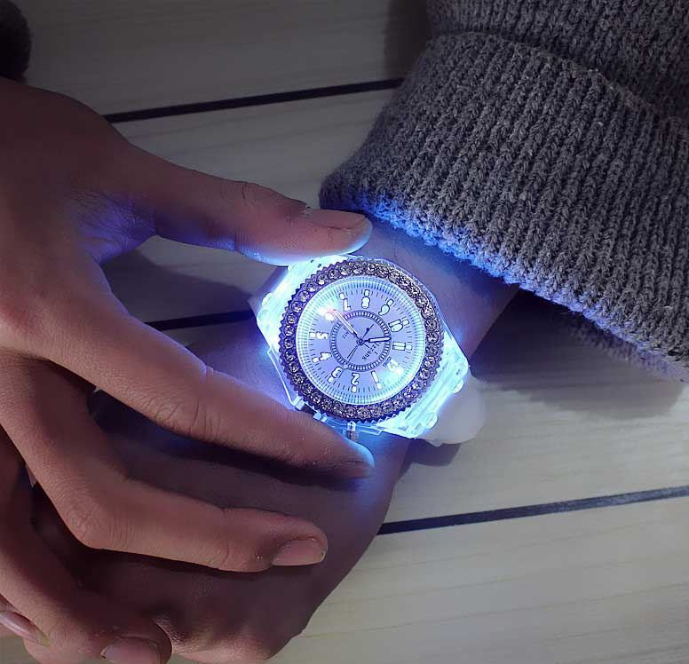 Piękny zegarek damski z cyrkoniami , podświetlany LED - ma dostępne aż 7 kolorów :)