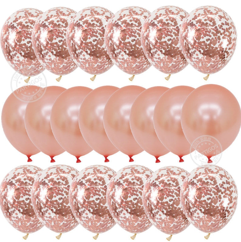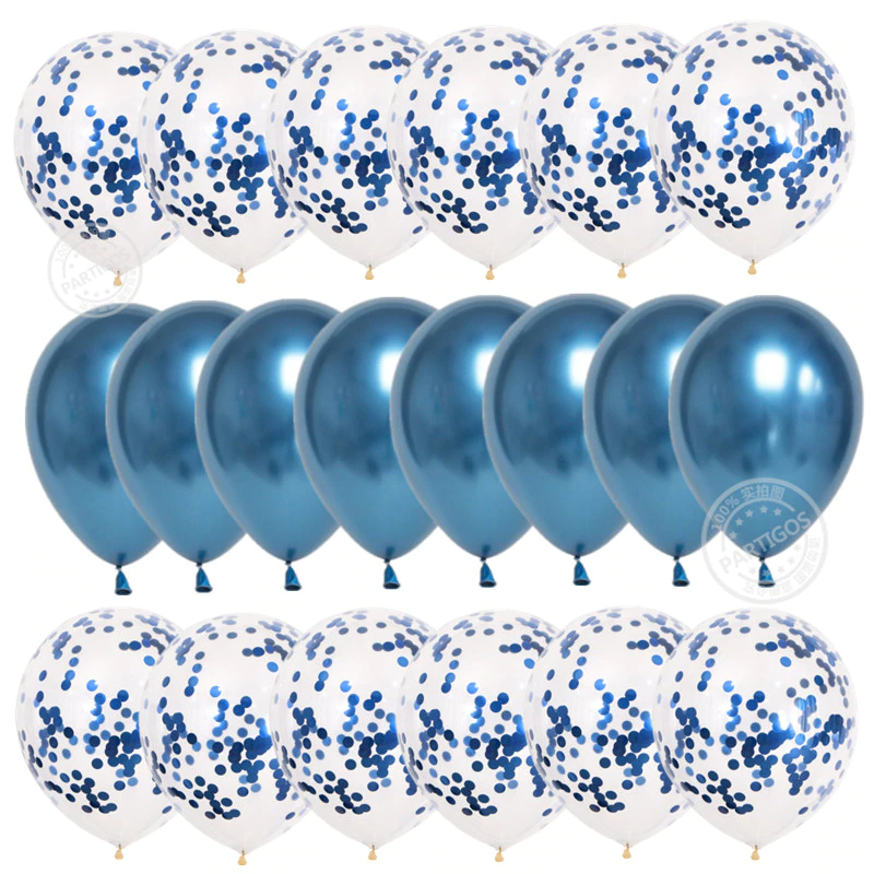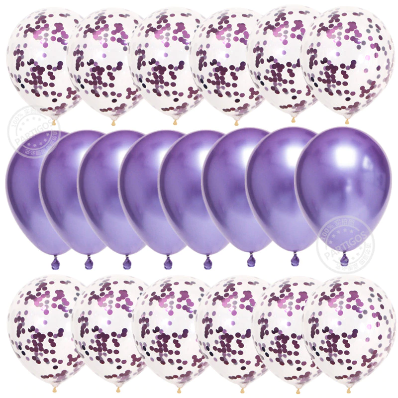 W zestawie jest 8 lateksowych jednokolorowych balonów + 12 z konfetti w takim samym kolorze jak pozostałe 8.