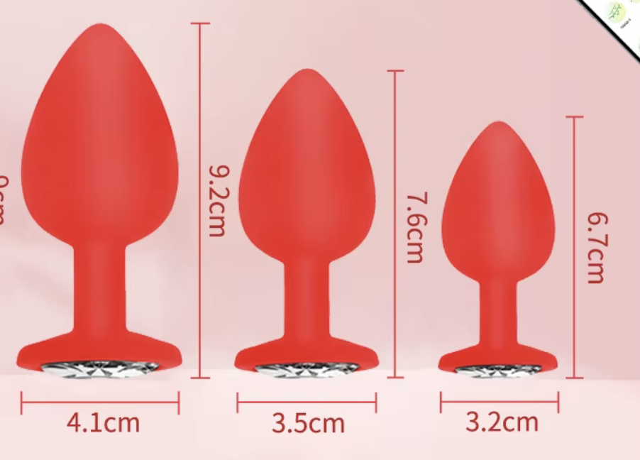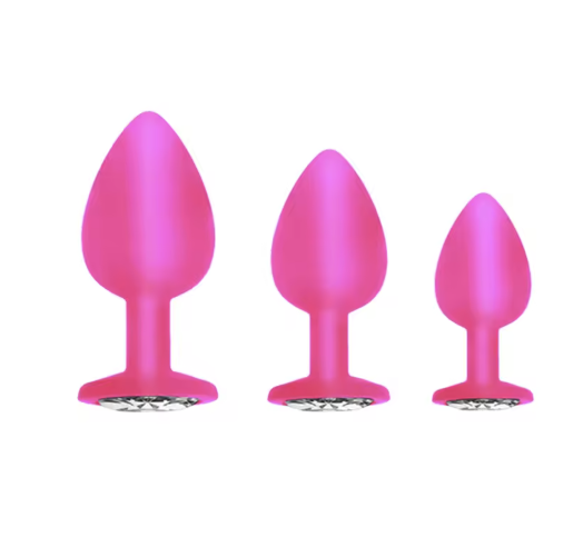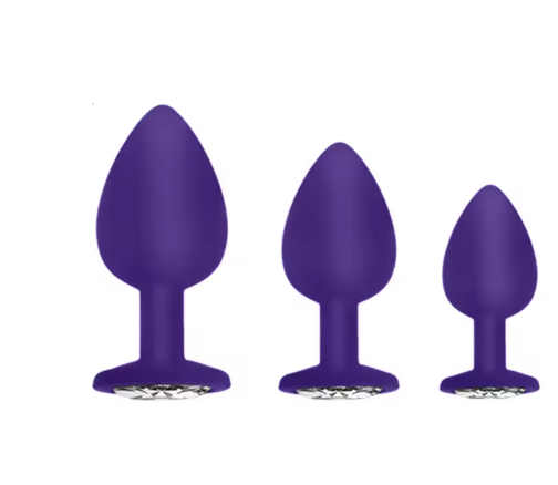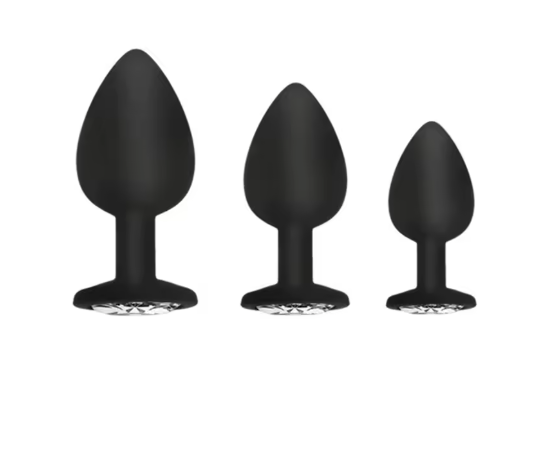 Zestaw 3 korków analnych z kryształkiem - silikonowe plugi analne w trzech rozmiarach