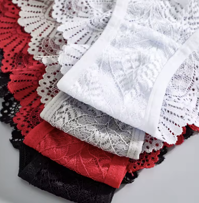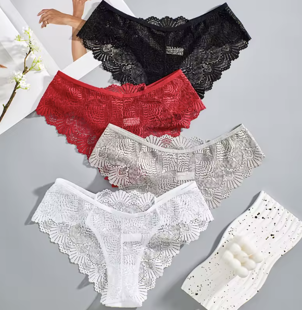 Odkryj wyjątkową kolekcję – zestaw 4 sztuk modnych i seksownych majtek damskich! Te wygodne figi to połączenie wyrafinowanego designu z komfortem na co dzień. Wykonane z wysokiej jakości, solidnej koronki, zapewniają elegancki i zmysłowy wygląd. Podkreślają kobiecą sylwetkę i dodają pewności siebie. Idealne na każdą okazję, zarówno na co dzień, jak i na specjalne chwile. Postaw na seksowną, a jednocześnie wygodną bieliznę, która podkreśli Twoją kobiecość!