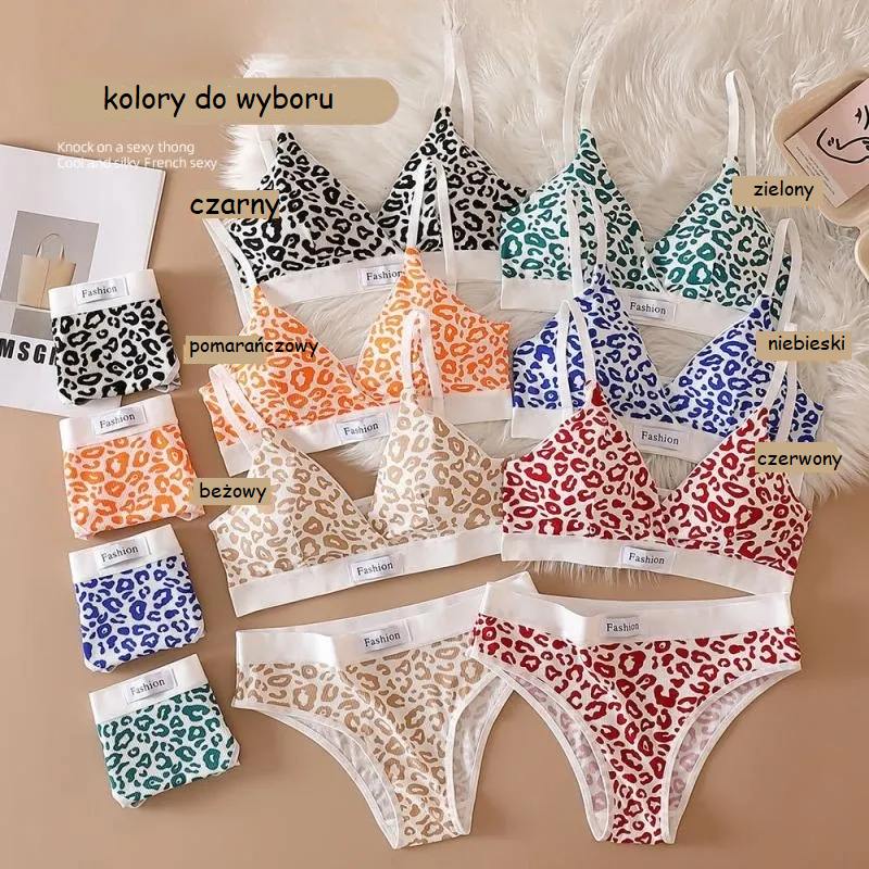 Majtki posiadają delikatnie wyższy stan, biustonosz wyciągane wkładki.