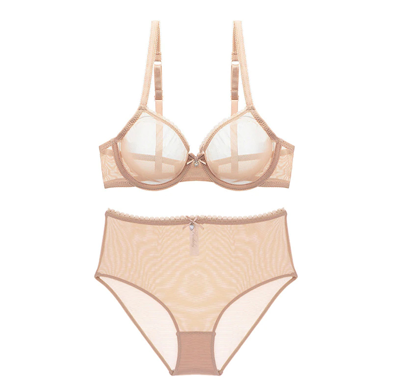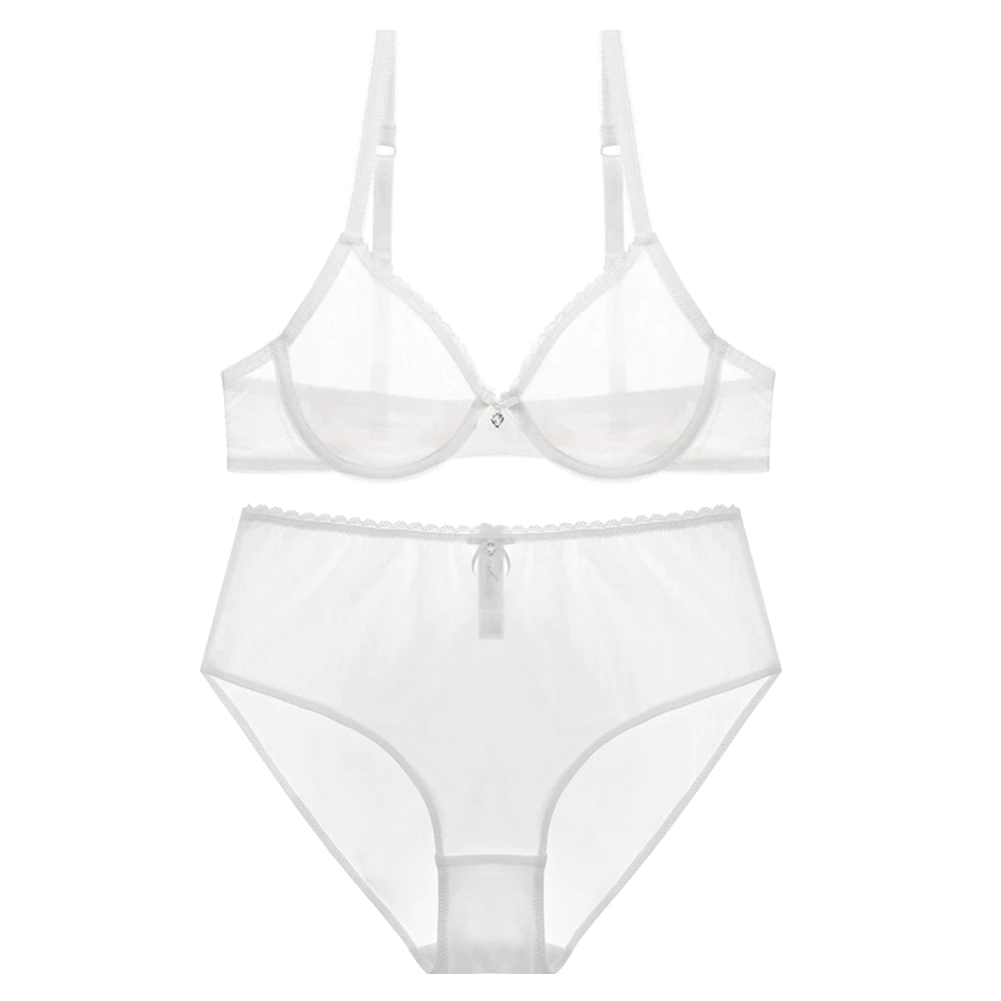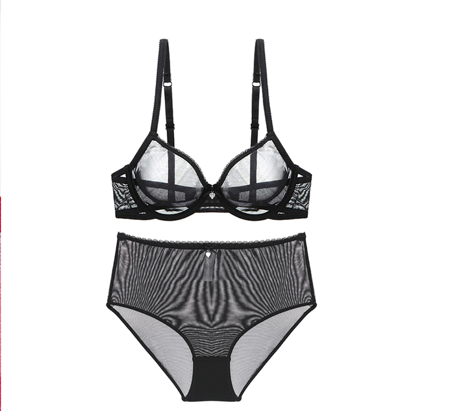 Zestaw bielizny damskiej , z prześwitującym biustonoszem.