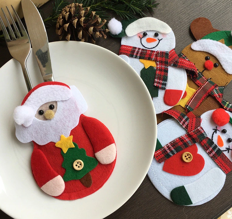 Zapraszasz na kolację wigilijną całą swoją rodzinę? Gdy siedzicie przy niewielkim stole, zdarza wam się wziąć sztućce osoby siedzącej obok? A może po prostu szukasz oryginalnej, uroczej ozdoby świątecznej? Te wykonane z miękkiego filcu etui na sztućce pomogą ci w utrzymaniu porządku na stole. Każdy ze wzorów posiada u góry kieszonkę, w którą możesz włożyć nóż i widelec lub łyżkę. Dzięki etui każdy będzie miał swoje sztućce zawsze pod ręką, bez ryzyka podebrania ich komuś innemu! Słodkie, świąteczne wzory dodatkowo będą cieszyć oczy każdego uczestnika kolacji. Dodaj swojemu wigilijnemu stołowi odrobiny koloru!